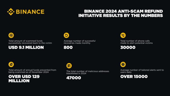 2. 币安反诈退款计划全天候运作,以预防诈骗、保护用户并向受害者退款。