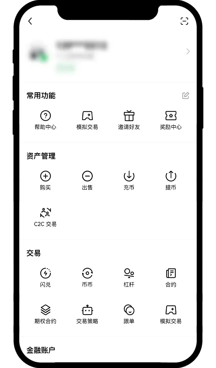 App端绑定收付款方式: 打开欧意 App,点击【C2C买币】-右下角【我的】图标-【收款账号管理】。