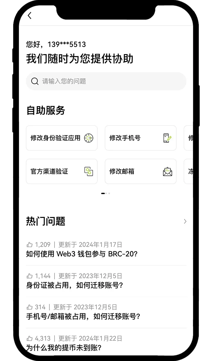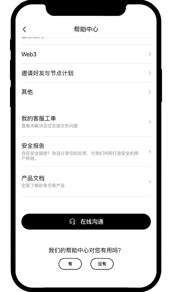 打开欧意App首页,点击左上角个人中心,进入帮助中心点击右下角联系客服查询。