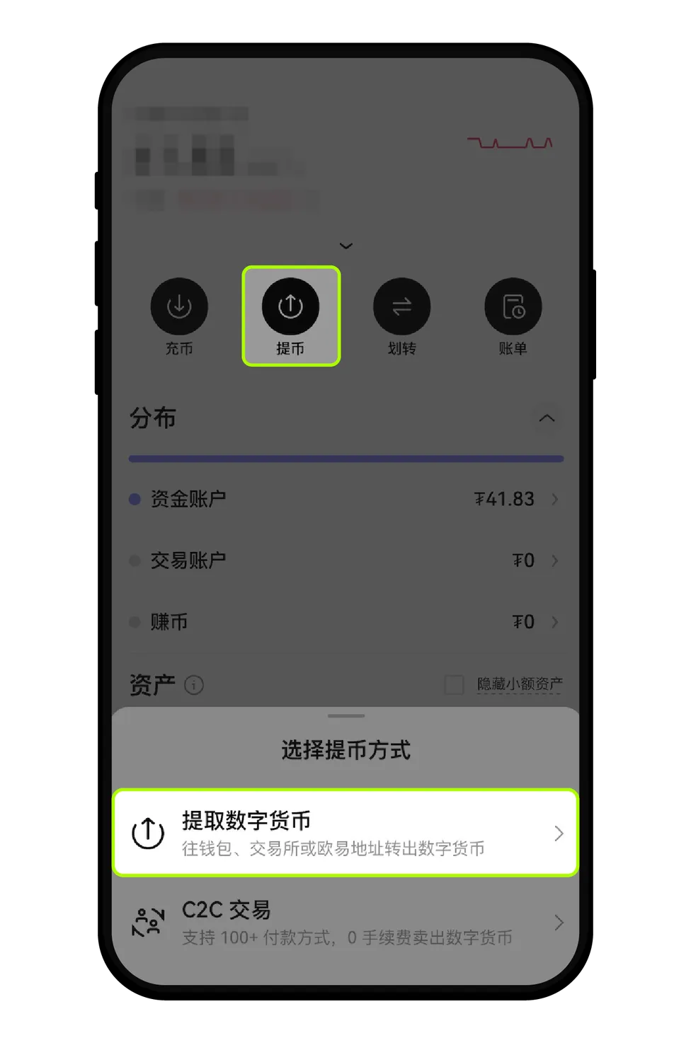 1. 打开App首页,点击【资产】—【提币】—【提取数字货币】— 搜索标签币种