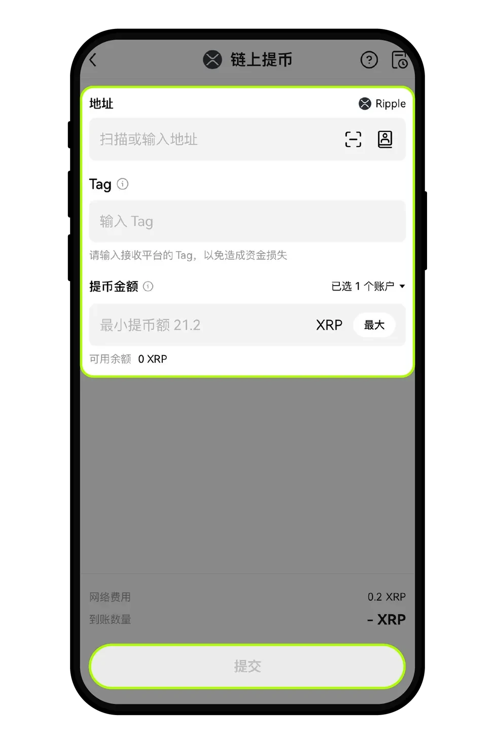 3. 输入【Memo/Tag】— 输入【提币金额】— 点击【提交】,按要求输入相关密码、验证码,完成操作。